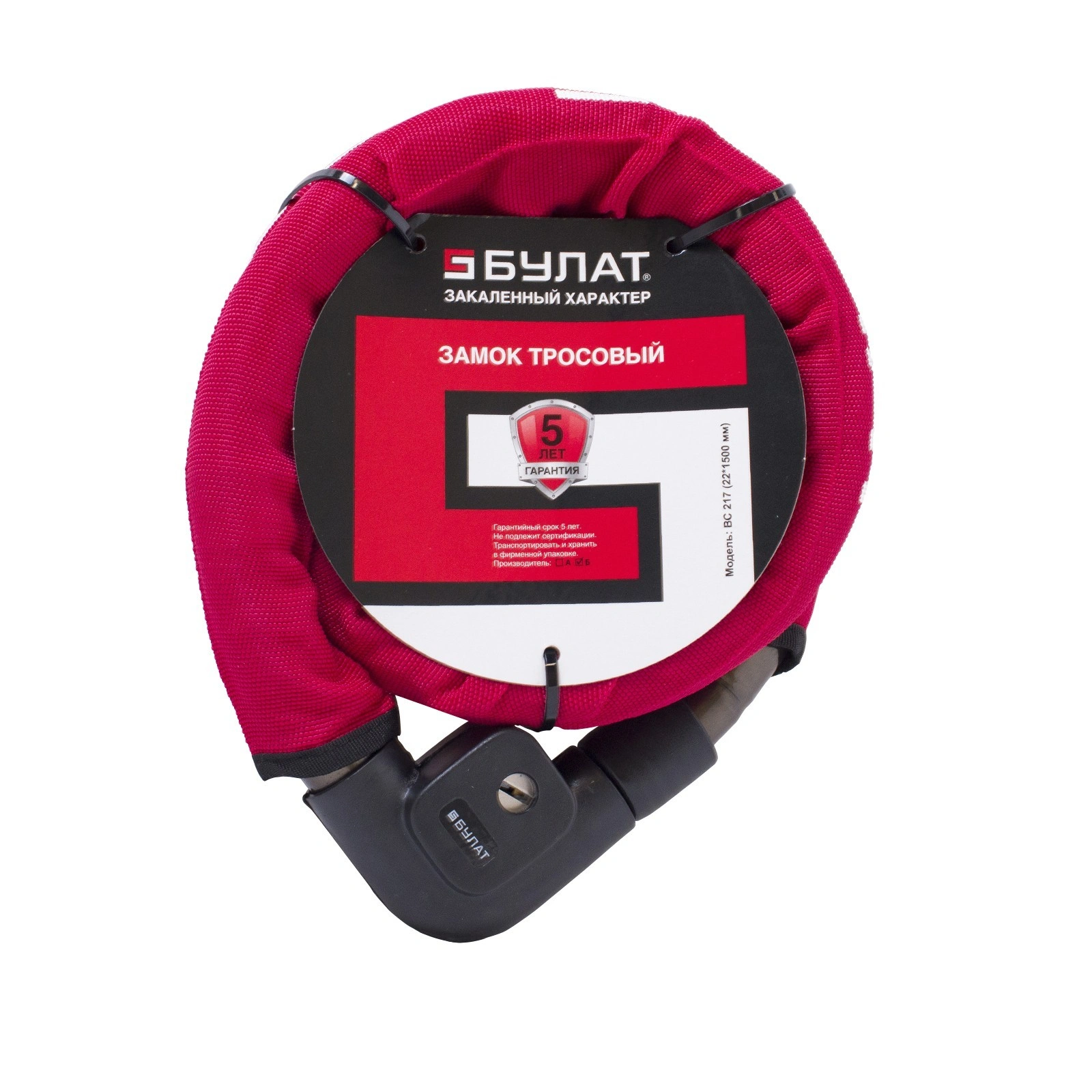— Трос: стальной, диаметром 22 мм, длиной 1500 мм, усилен внешними стальными