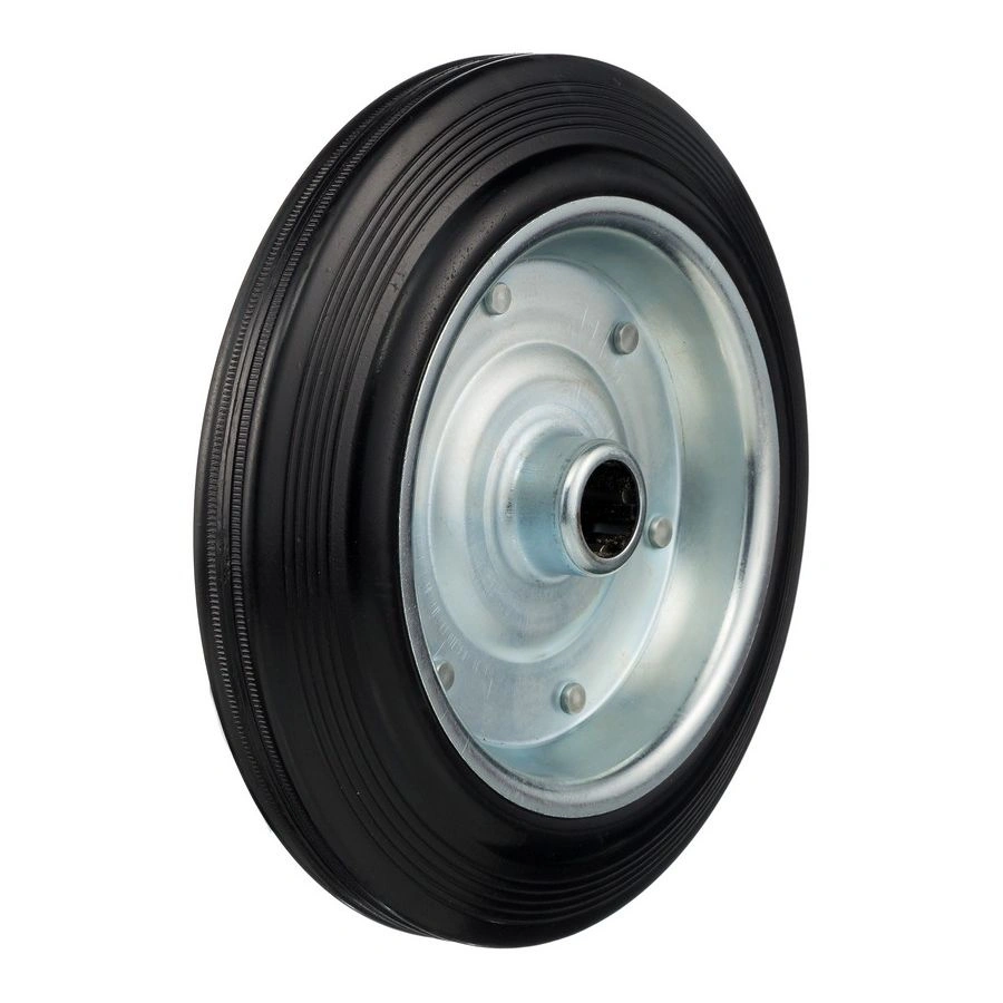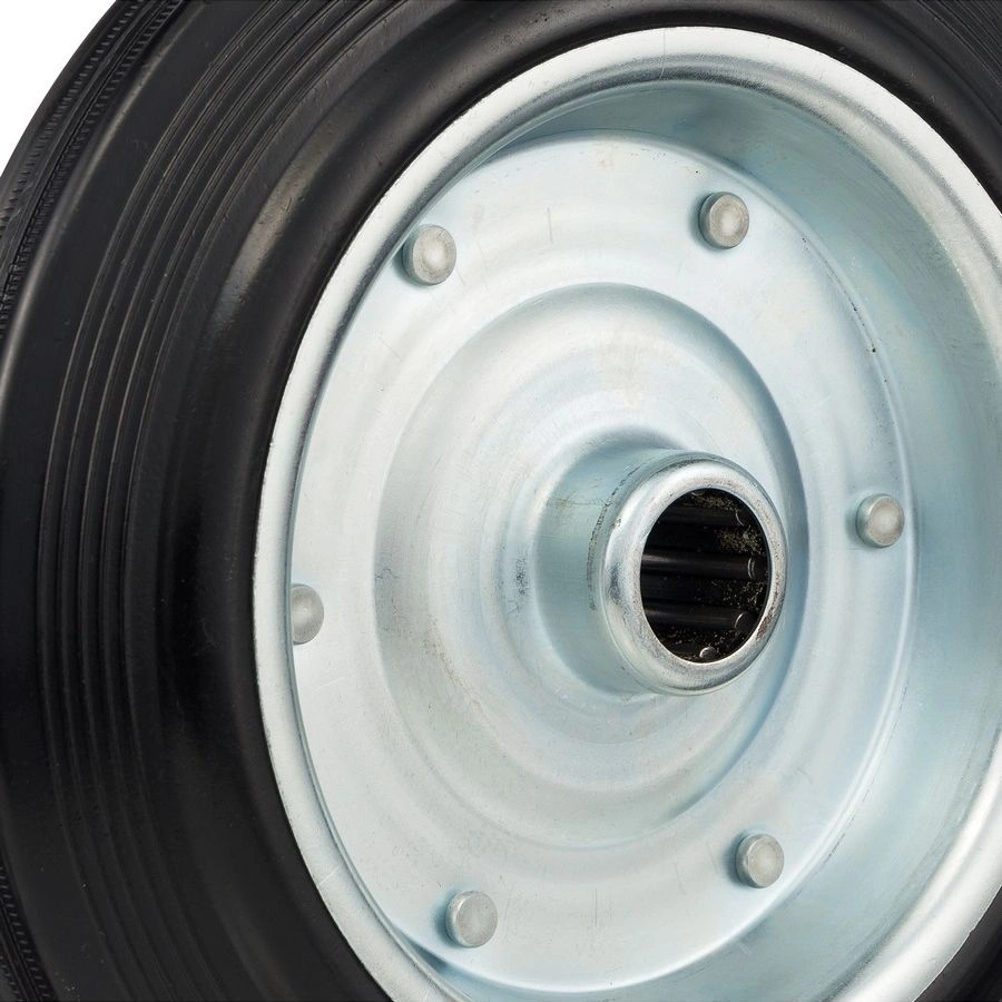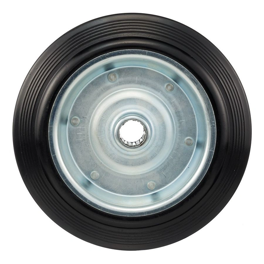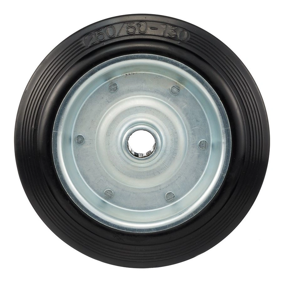 Колесо под ось 25мм. 4000-250, диаметр 250мм., грузоподъемность 210кг., резина, металл. Колесо из черной литой резины. Центр из стального оцинкованного обода из штампованной стали. В оси колес роликовый подшипник. Колеса из черной резины, центр из двух гальванизированных дисков из штампованной стали. Роликовый (игольчатый) подшипник расположен в углублении, выдавленном под прессом, и содержит цилиндрические ролики подшипника. Возможно применение на относительно грубых полах складов, заводов, производственных и строительных площадках. Данные колеса можно использовать на неровных поверхностях, во влажной окружающей среде и использовании вне помещения, не рекомендуется применять в среде с органическими растворителями, хлорированными веществами, гидрокарбонатами и минеральными маслами. Температура эксплуатации от -20 до +70С.