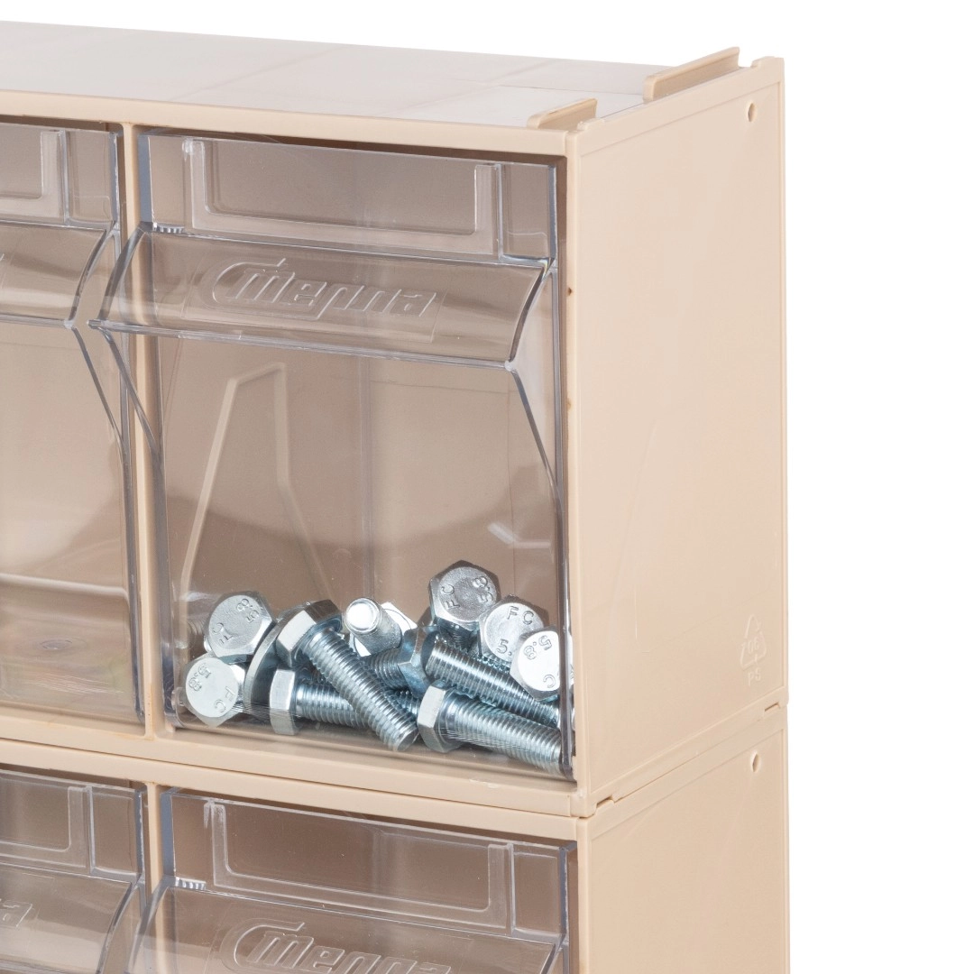 - Обзорность содержимого сквозь прозрачные внутренние ячейки;