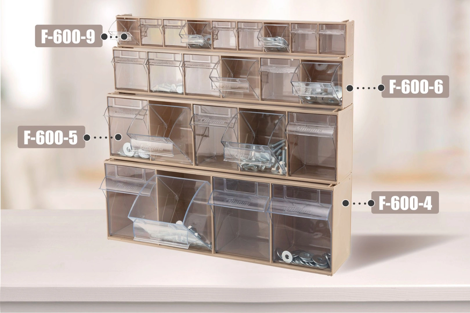 Короб откидной F-600-4-B, 600х178х206 мм, служит для хранения мелкоштучных предметов. Данная система хранения не подвержена случайному опрокидыванию. Откидные ячейки обеспечивают быстрый доступ к необходимым предметам. В случае необходимости полного высыпания или наполнения короб легко извлекается. Полезный внутренний размер каждой ячейки 138х127х134мм.