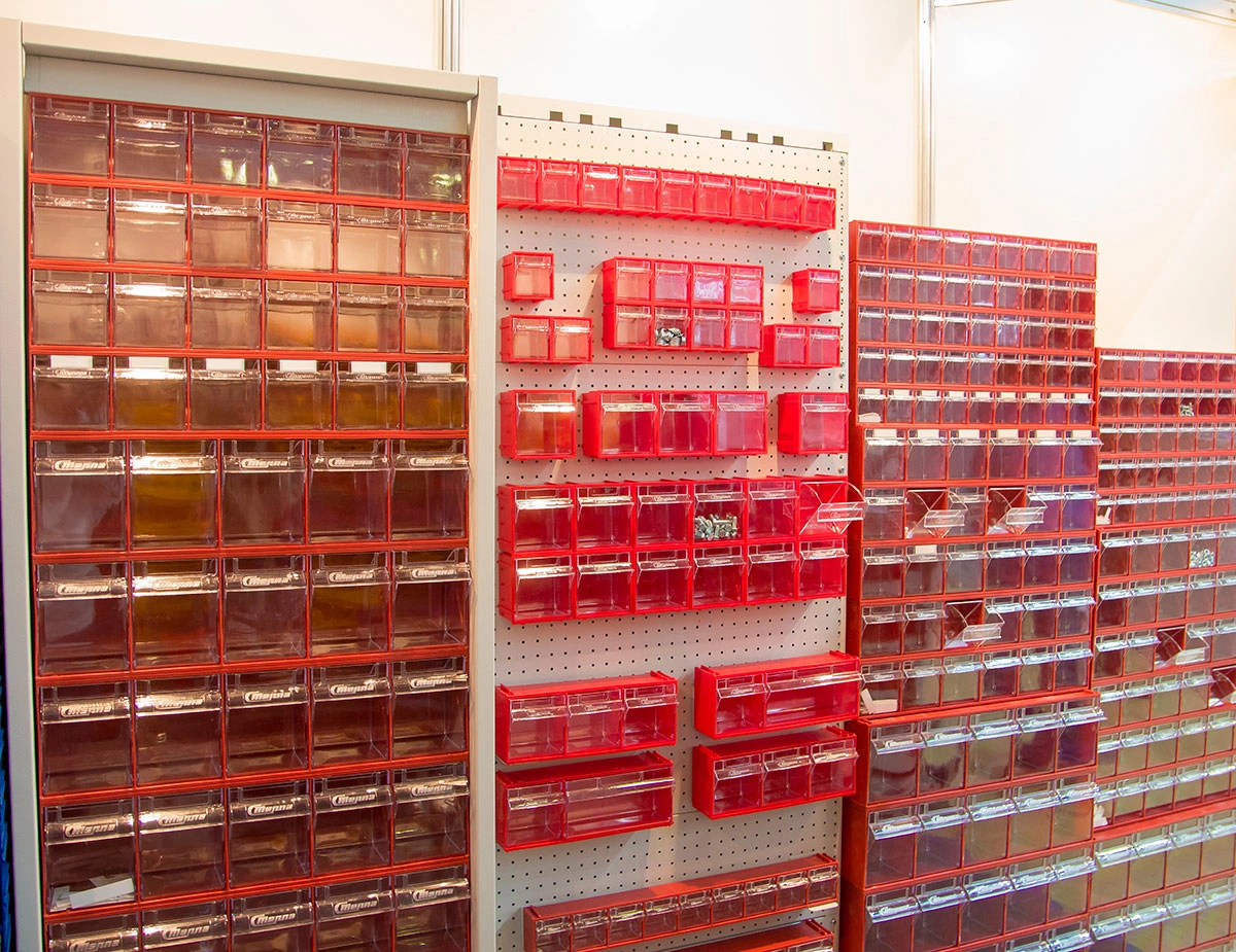 Шкаф открытый Стелла-техник V-420-00-04-05-03 (665х250х2000) представляет собой удобную систему хранения, на основе откидных коробов. Шкаф подойдет для выставочных залов, магазинов, офисов, складов. Благодаря боковым стенкам шкафа, существует возможность выравнивания коробов по передней лицевой плоскости, значительно улучшающий эстетический вид конструкции. Благодаря визуализации содержимого коробов, он отлично подходит для рекламирования и хранения мелкоштучной продукции в больших объемах. Комплектация: Шкаф FOX (665х250х2000) V-420, без коробов - 1 шт.; Короб откидной Стелла-техник F-600-6 , 600х96х112мм, 6 ячеек, красный, прозрачный - 4 шт.; Короб откидной Стелла-техник F-600-5 , 600х140х168мм, 5 ячеек, красный, прозрачный – 5 шт.; Короб откидной Стелла-техник F-600-4 , 600х178х206мм, 4 ячейки, красный, прозрачный – 3 шт.; Упаковка. Габаритные размеры V-420-00-04-05-03: высота 2000мм., ширина 665мм., глубина 250мм.