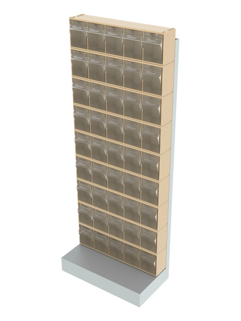 Стойка бежевая напольная Стелла-техник 403-00-00-09-B (610х325х1500) представляет собой удобную систему хранения, на основе откидных коробов. Стойка подойдет для выставочных залов, магазинов, офисов, складов. Комплектация: Рама FOX (610х325х1500) V403 напольная односторонняя с основанием - 1 шт; Короб откидной Стелла-техник F-600-5 , 600х140х168мм, 5 ячеек, красный, прозрачный - 9 шт.; Упаковка. Параметры упакованного товара: длина 330мм., ширина 630мм., высота 1520мм., вес 26кг. Преимущества: Металлическое основание; Значительная устойчивость; Хорошая вместимость; Длительный срок службы.