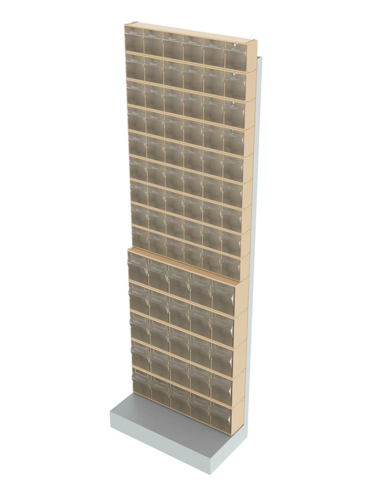 Стойка бежевая напольная Стелла-техник 405-00-09-05-B (610х325х1850) представляет собой удобную систему хранения на основе откидных коробов. Стойка подойдет для выставочных залов, магазинов, офисов, складов. Комплектация: Рама FOX (610х325х1850) V405 напольная односторонняя с основанием - 1 шт.; Короб откидной Стелла-техник F-600-6 , 600х96х112мм, 6 ячеек, красный, прозрачный – 9 шт. Короб откидной Стелла-техник F-600-5 , 600х140х168мм, 5 ячеек, красный, прозрачный - 5 шт.; Упаковка. Преимущества: Металлическое основание; Значительная устойчивость; Хорошая вместимость; Длительный срок службы.