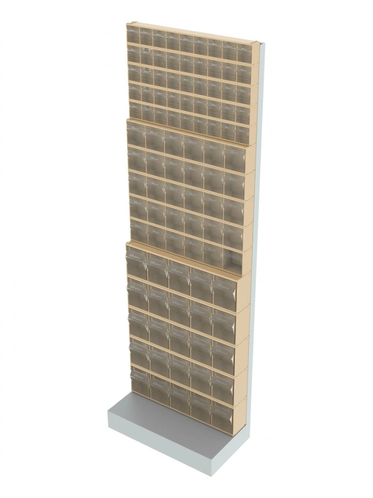 Стойка бежевая напольная Стелла-техник 405-05-05-05-B (610х325х1850) представляет собой удобную систему хранения на основе откидных коробов. Стойка подойдет для выставочных залов, магазинов, офисов, складов. Комплектация: Рама FOX (610х325х1850) V405 напольная односторонняя с основанием - 1 шт.; Короб откидной Стелла-техник F-600-9 , 600х68х78мм, 9 ячеек, красный, прозрачный -5 шт.; Короб откидной Стелла-техник F-600-6 , 600х96х112мм, 6 ячеек, красный, прозрачный – 5 шт.; Короб откидной Стелла-техник F-600-5 , 600х140х168мм, 5 ячеек, красный, прозрачный – 5 шт.; Упаковка. Преимущества: Металлическое основание; Значительная устойчивость; Хорошая вместимость; Длительный срок службы.