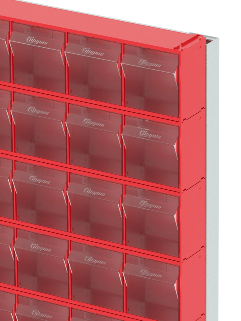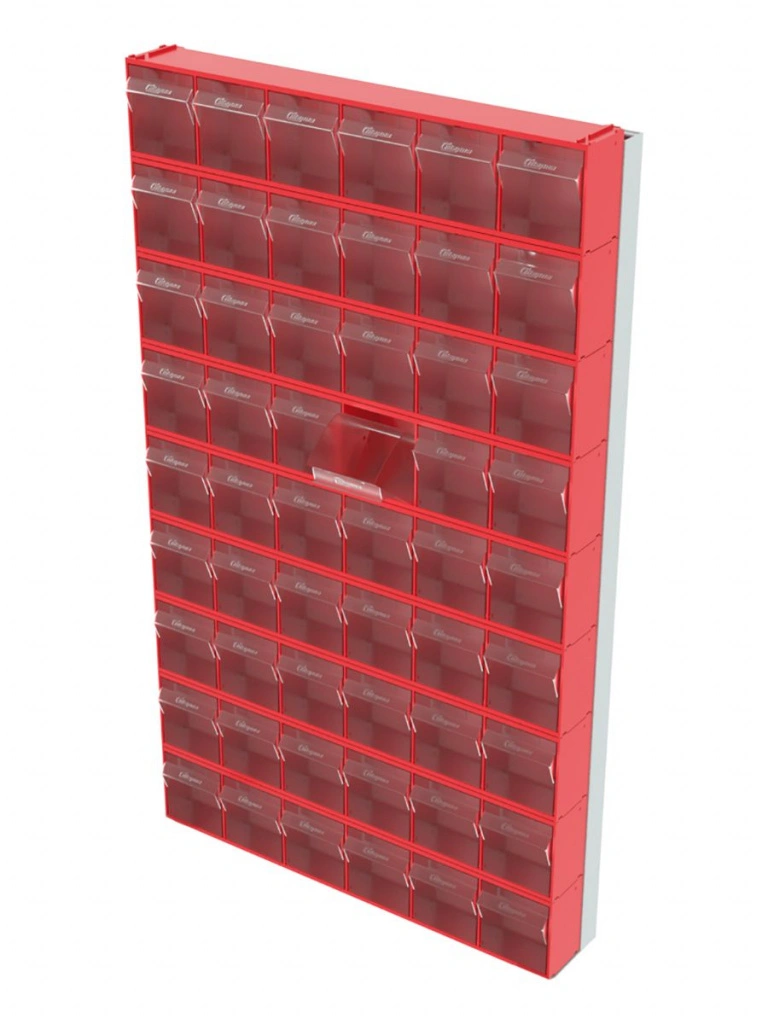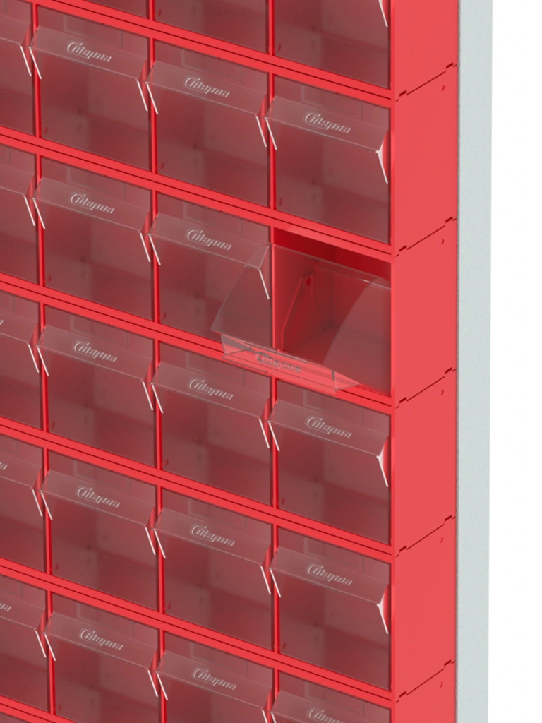 Стойка Стелла-техник 402-00-09-00 (610х40х1000) настенная представляет собой удобную систему хранения на основе откидных коробов, которая подойдет для использования в выставочных залах, магазинах, складах. Стойка крепится на стену при помощи саморезов или анкерных болтов (крепеж не входит в комплект и подбирается под уровень загруженности стойки). Комплектация: Рама FOX (610х40х1000h) V402 - 1 шт.; Короб откидной Стелла-техник F-600-6 , 600х96х112мм, 6 ячеек, красный, прозрачный - 9 шт.; Упаковка. Преимущества: Металлическое основание; Значительная устойчивость; Хорошая вместимость; Длительный срок службы.