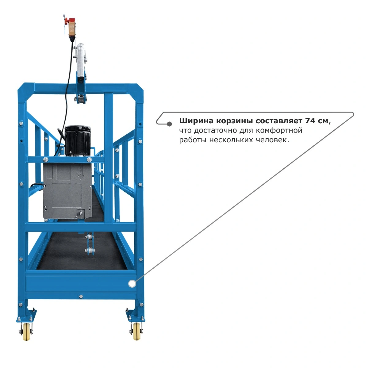 - Ширина корзины составляет 74 см, что достаточно для комфортной работы нескольких человек.