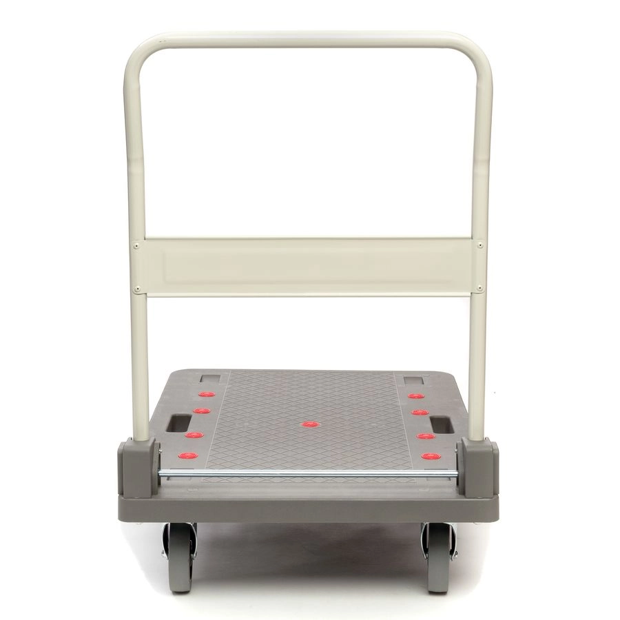 Тележка платформенная Стелла-техник FW-250П со складной ручкой предназначена для перевозки груза весом до 250кг по ровной поверхности в магазине, офисе, на складе. Тележка оснащена удобной складной ручкой, противоскользящей пластиковой платформой. Оснащается двумя поворотными и двумя не поворотными колесами диаметром 125 мм из термопластичной резины. Наличие складной ручки обеспечивает компактное хранение тележки.