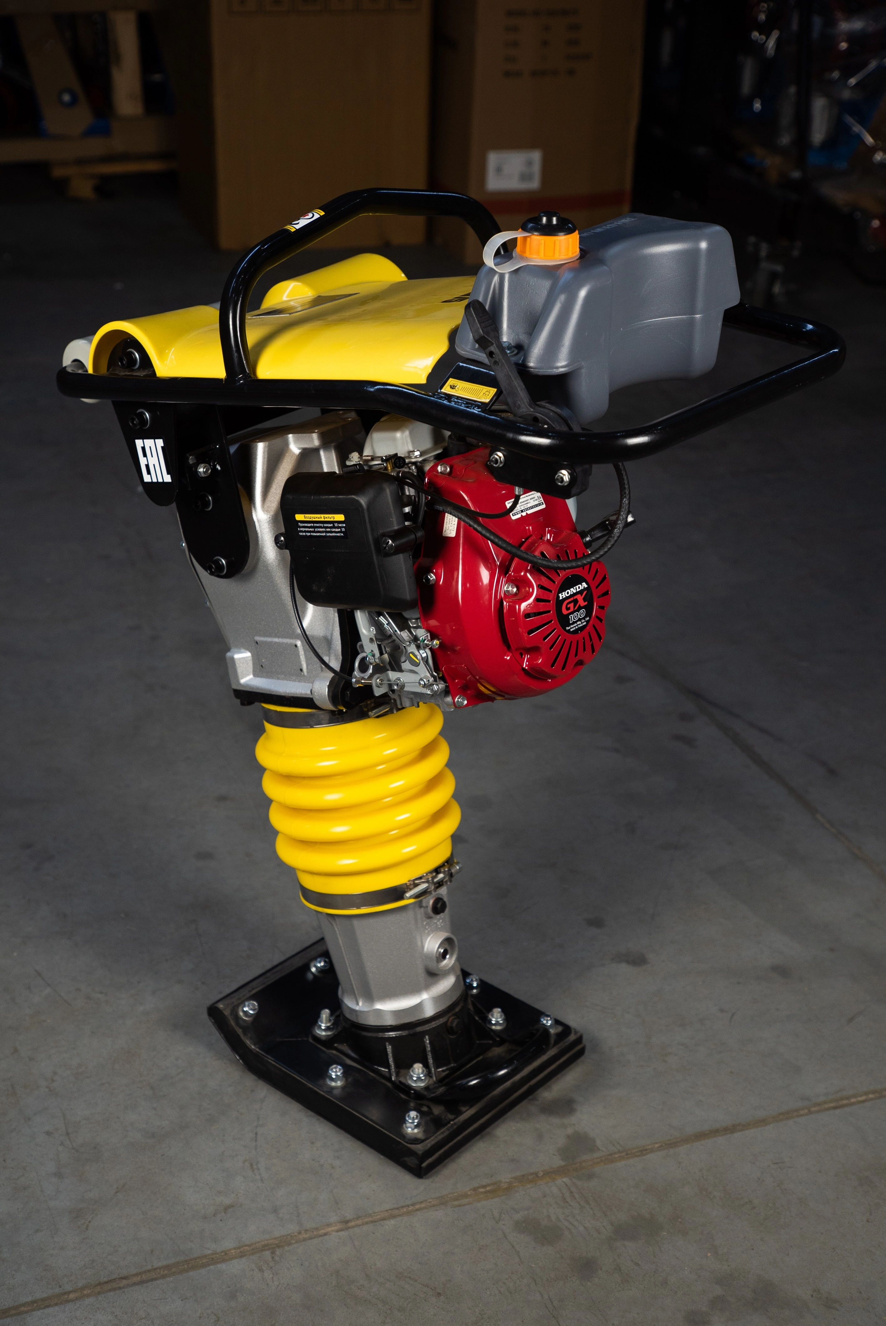 Вибротрамбовка TOR RM-75 (Honda) с мощным бензиновым двигателем Honda 4 л.с. Популярная модель вибротрамбовки с высокой силой удара 14кН. Высокая сила удара 14 кН. амплитуда колебаний 40-80мм и высокая частота ударов 640-680 кол/мин обеспечат высокую степень уплотнения. Подойдет для трамбовки как сыпучих, так и вязких, тяжелых грунтов и асфальта. Используется для трамбовки грунта в труднодоступных местах и в условиях ограниченного пространства. Наиболее эффективна, если площадь уплотнения не превышает 10м2. С помощью вибротрамбовок укрепляют грунт вокруг колон, свай, труб а так же в углах, траншеях где не может работать более крупная техника, так же вибротрамбовки востребованы в дорожном строительстве и при проведении ремонтных работ. Преимущества TOR TM-75 (Honda): - Бензиновый инструмент прост в использовании и автономен - Двигатель от производителя лидера рынка - Высокое качество исполнения - Защитная крышка из прочного пластика для безопасности оператора - Большой диапазон настойки амплитуды колебания для работы с разными типами грунтов - Оптимальное соотношение мощности и производительности